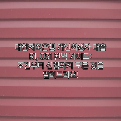 ✅ 대한저축은행 개인회생자 대출 R1, O51 자격조건과 신청방법이 궁금하다면? 지금 바로 확인하세요!