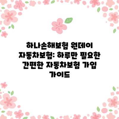 하나손해보험 원데이 자동차보험: 하루만 필요한 간편한 자동차보험 가입 가이드