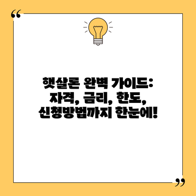 햇살론 완벽 가이드: 자격, 금리, 한도, 신청방법까지 한눈에!