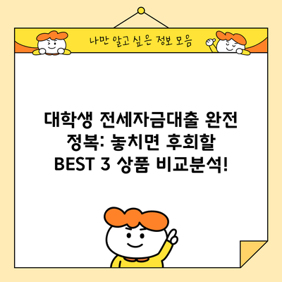 대학생 전세자금대출 완전 정복: 놓치면 후회할 BEST 3 상품 비교분석!