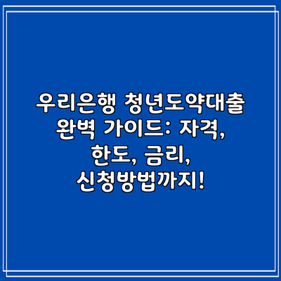우리은행 청년도약대출 완벽 가이드: 자격, 한도, 금리, 신청방법까지!