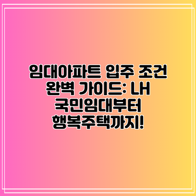 임대아파트 입주 조건 완벽 가이드: LH 국민임대부터 행복주택까지!
