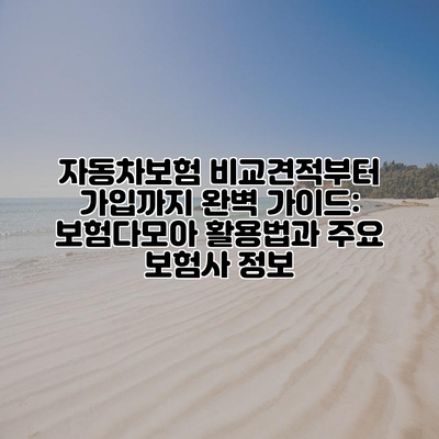 자동차보험 비교견적부터 가입까지 완벽 가이드: 보험다모아 활용법과 주요 보험사 정보
