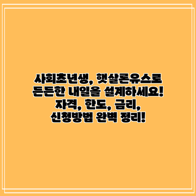 사회초년생, 햇살론유스로 든든한 내일을 설계하세요! 자격, 한도, 금리, 신청방법 완벽 정리!