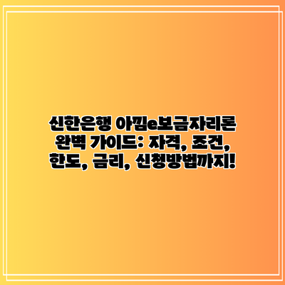 신한은행 아낌e보금자리론 완벽 가이드: 자격, 조건, 한도, 금리, 신청방법까지!