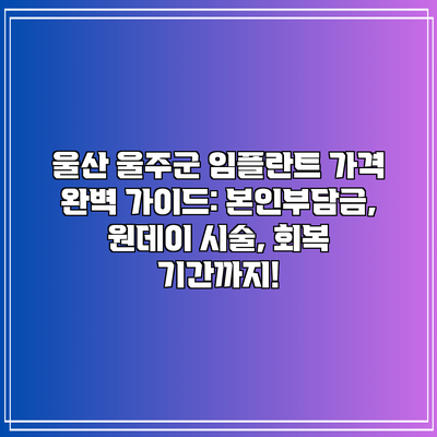 울산 울주군 임플란트 가격 완벽 가이드: 본인부담금, 원데이 시술, 회복 기간까지!
