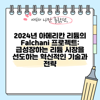 2024년 아메리칸 리튬의 Falchani 프로젝트: 급성장하는 리튬 시장을 선도하는 혁신적인 기술과 전략