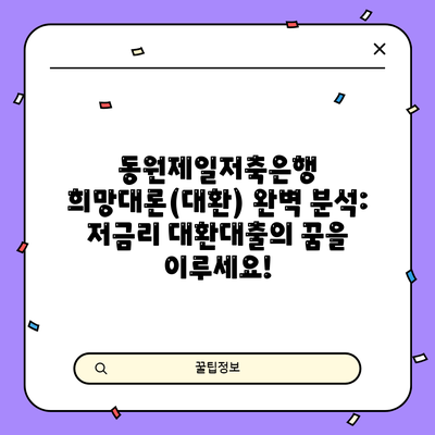 동원제일저축은행 희망대론(대환) 완벽 분석: 저금리 대환대출의 꿈을 이루세요!