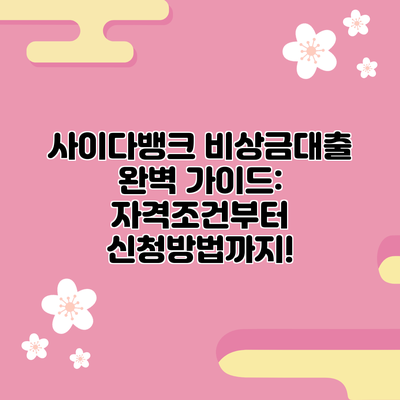 사이다뱅크 비상금대출 완벽 가이드: 자격조건부터 신청방법까지!