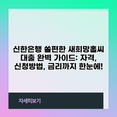 신한은행 쏠편한 새희망홀씨 대출 완벽 가이드: 자격, 신청방법, 금리까지 한눈에!