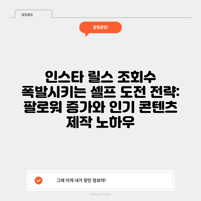 인스타 릴스 조회수 폭발시키는 셀프 도전 전략: 팔로워 증가와 인기 콘텐츠 제작 노하우